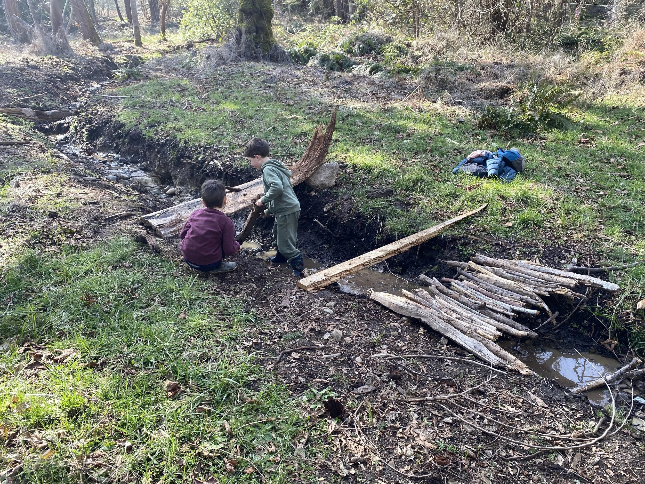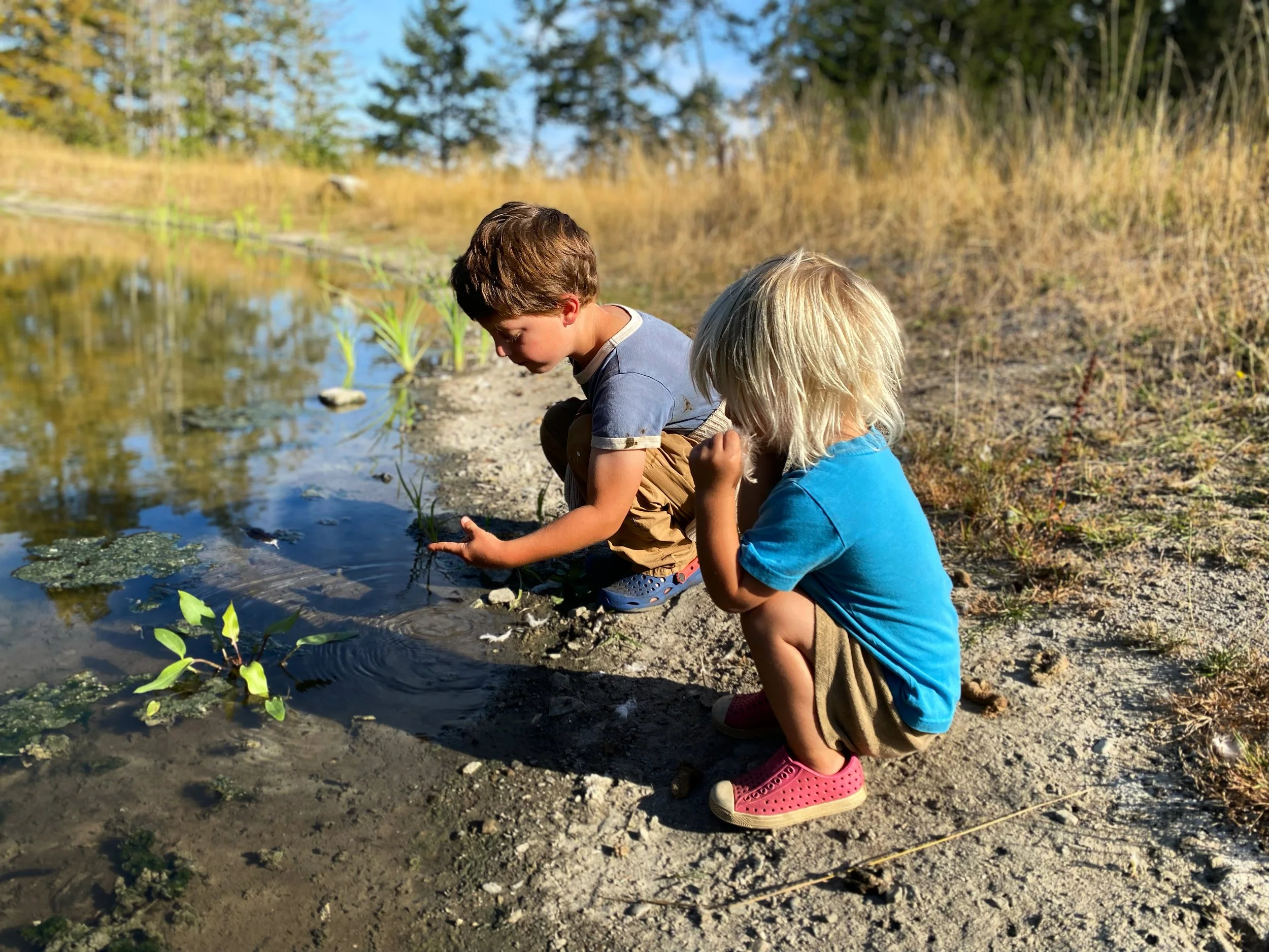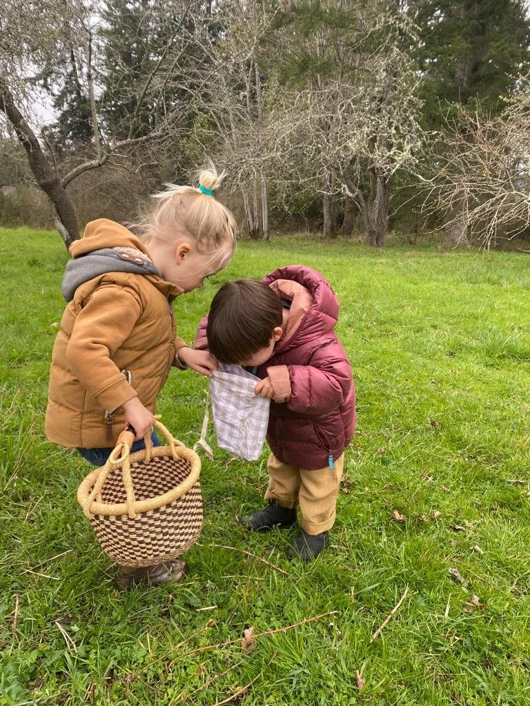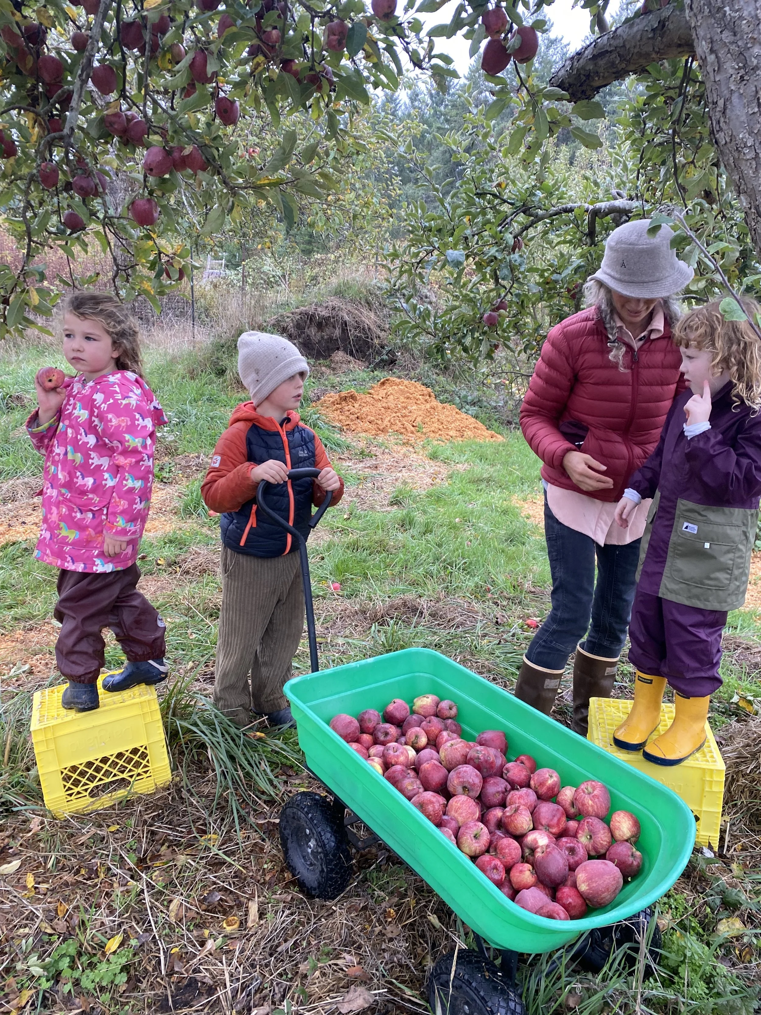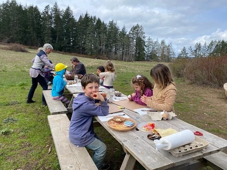 Our children experience forest trails, wild open fields, heritage orchards, and bird filled hedgerows. Along the seashore, they encounter eel grass beds, tide pools, mudflats filled with sand-dollars, and the ever changing vista of the Salish Sea.