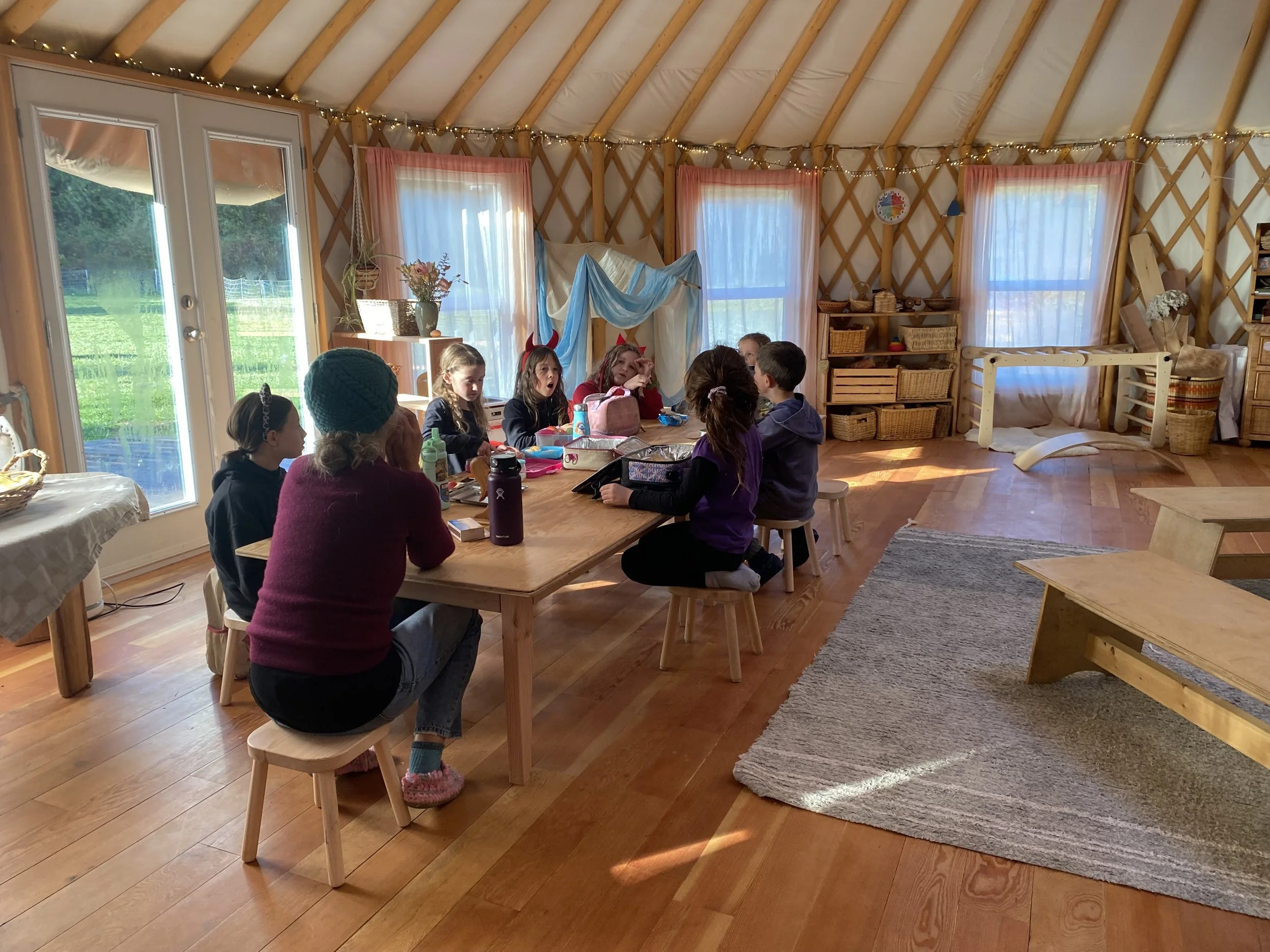 We group our children into two cohorts, a kindergarten group for ages 5-6 and a primary group for ages 7-11. Each group has activities and environments curated to their particular need and stage of development, while also spending together as a big mixed age community.