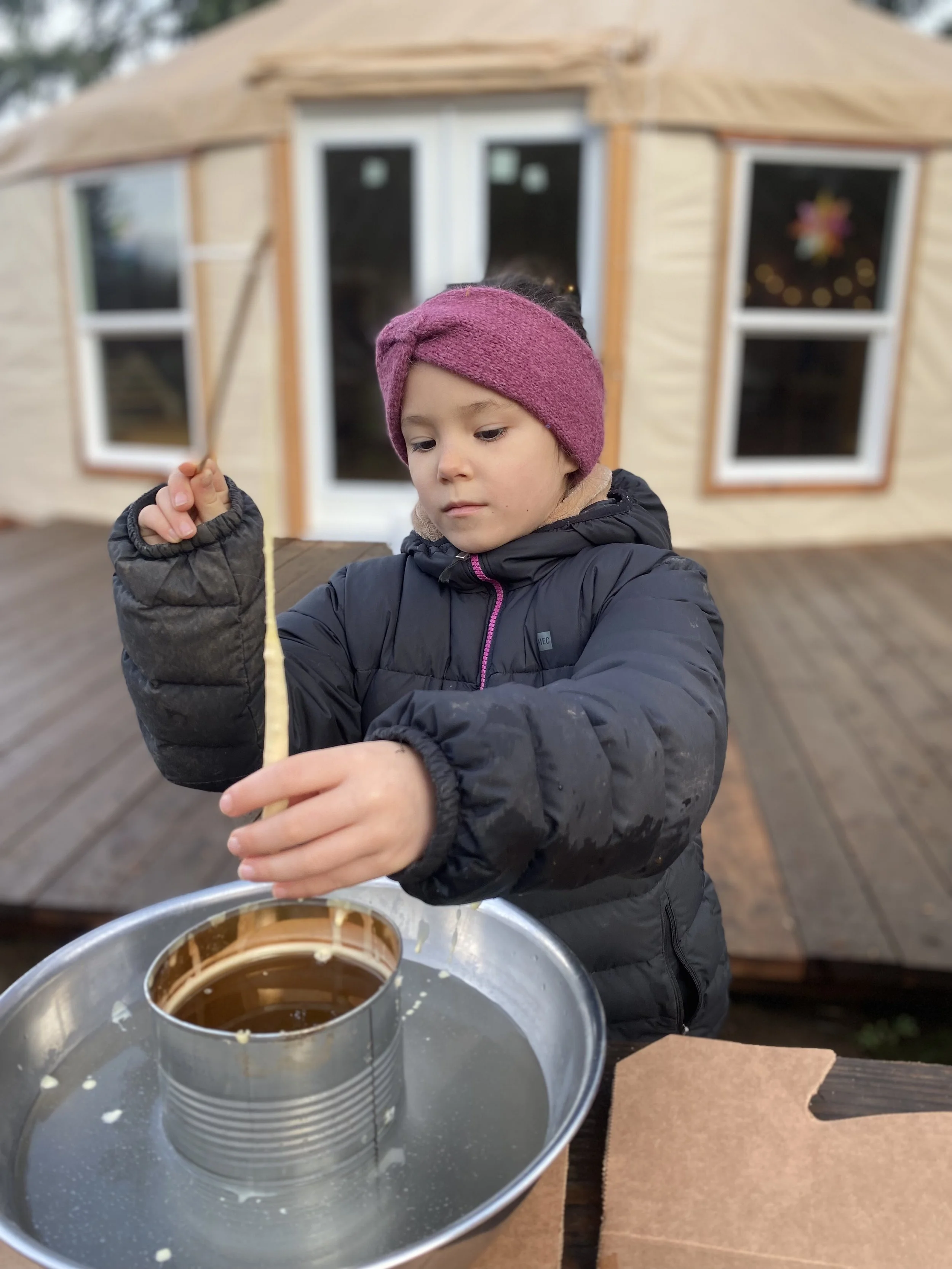 Near the Winter Solstice we host an meditative walk around an evergreen spiral inside the yurt, entering the quiet and sacred time of togetherness and winter magic.